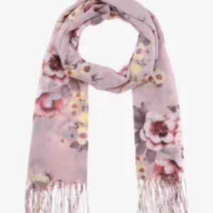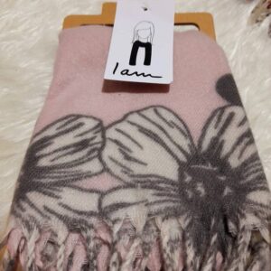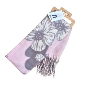 شال گلدار زنانه برند I AM شال چشمنواز با زمینه صورتی ملایم که با گلهای سفید و طوسی، جلوهای زنانه،
