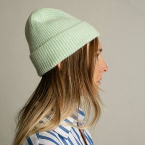 کلاه بافتنی سبز پسته‌ای زنانه برند I AM سادگی شیک برای روزهای سرد ❄️ اگر به دنبال یک اکسسوری زمستانی