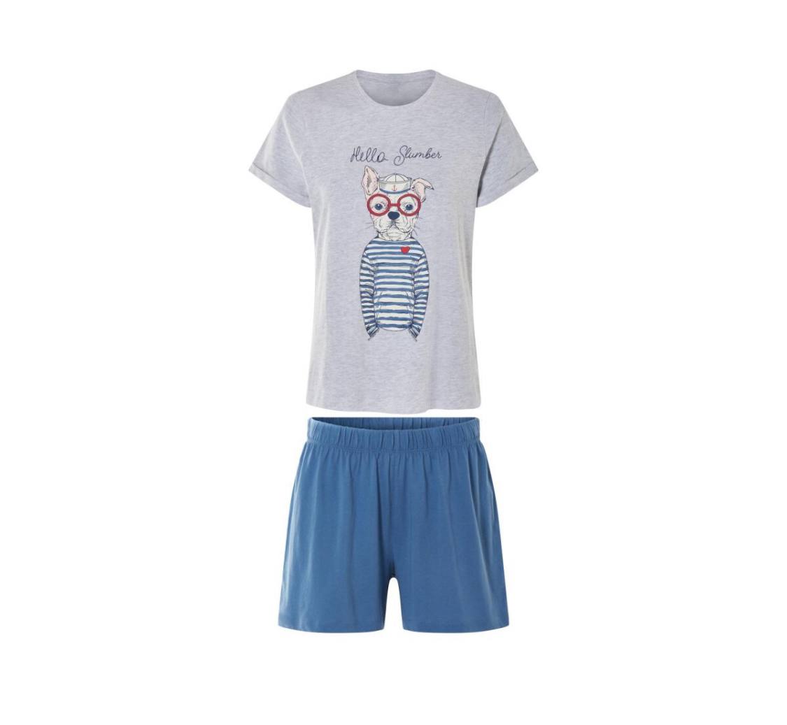 با ست «Hello Slumber»، خواب را به یک تجربه شیرین و پر از لبخند تبدیل کنید. تیشرت طوسی با تصویر بامزهی سگک عینکی و تیشرت راهراه، حس شوخطبعی و لطافت را به استایل شبانه شما میبخشد. نوشتهی «Hello Slumber» با فونتی بازیگوش، دعوتیست به دنیای آرامش و رویاهای رنگی. شورت آبی ساده با کمر کشی، راحتی کامل را برای لحظات استراحت فراهم میکند.