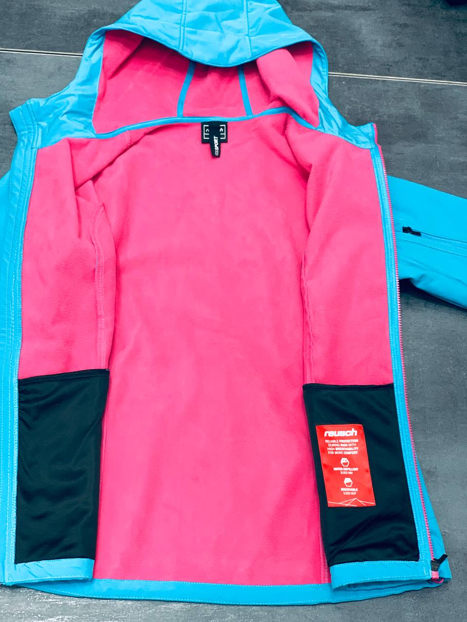 این سافتشل آبی با جزئیات صورتی، مثل یک نقاشی زنده از شادی و انرژی است. رنگ آبی آرامشبخش آن، حس خنکی و اعتماد را القا میکند، در حالی که خطوط صورتی با طراوت و بازیگوشی، روحی کودکانه و پرنشاط به آن میبخشند.