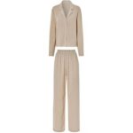 طراحی آزاد با تاپ یقهبرگردان و دکمهدار + شلوار کمرکشی