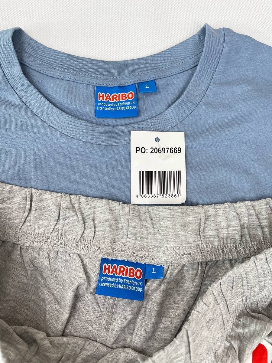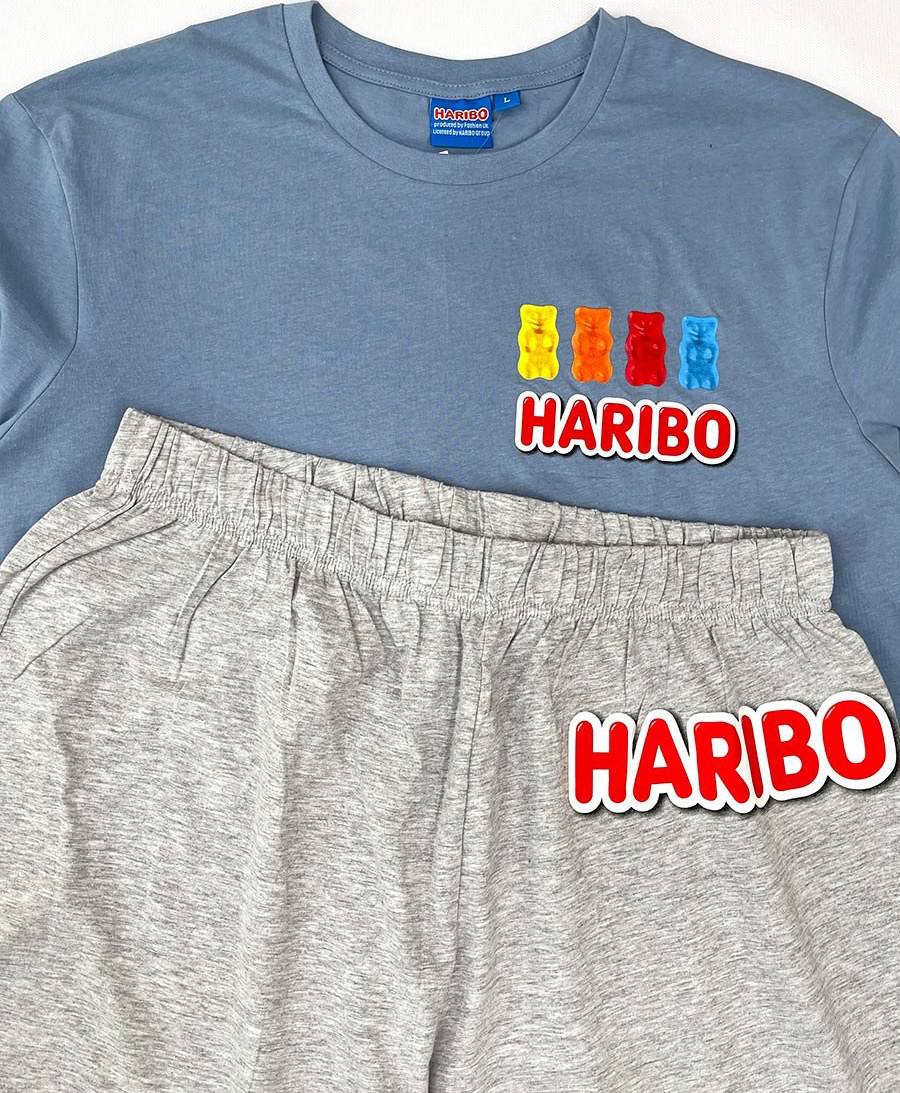 با این ست راحتی جذاب، لحظات استراحتتان را شیرینتر کنید! شامل یک تیشرت آستینبلند آبی روشن با چاپ خرسهای رنگی و لوگوی برجسته HARIBO روی سینه، و یک شلوار طوسی ساده با لوگوی هماهنگ روی ران، این ست ترکیبی است از راحتی، بازیگوشی و استایل منحصربهفرد.