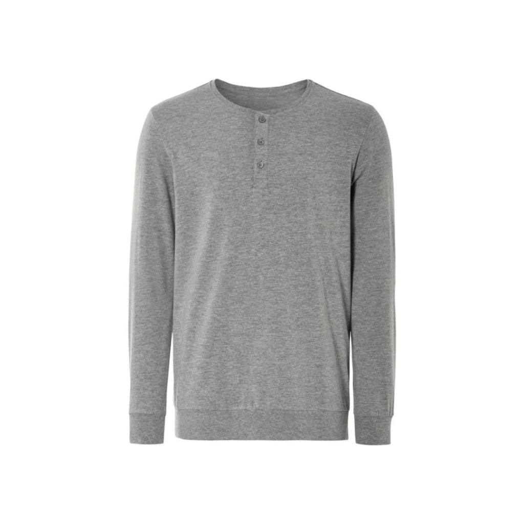 با این ست راحتی دو تکه، آرامش و استایل را همزمان تجربه کنید. شامل یک تیشرت آستینبلند هِنلی به رنگ طوسی روشن با یقه گرد و دکمهدار، و یک شلوار مشکی جذب با کمر کشی و دمپا کشدار، این ست انتخابی بینقص برای لحظات استراحت در خانه یا خواب شبانه است.