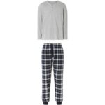 با این ست راحتی دو تکه، ترکیبی از استایل کلاسیک و آسایش روزمره را تجربه کنید. شامل یک تیشرت آستینبلند طوسی روشن با یقه گرد و دکمهدار (استایل هِنلی)، و یک شلوار راحتی با طرح چهارخانه سرمهای و طوسی، این ست انتخابی عالی برای خواب شبانه یا استراحت در خانه است.