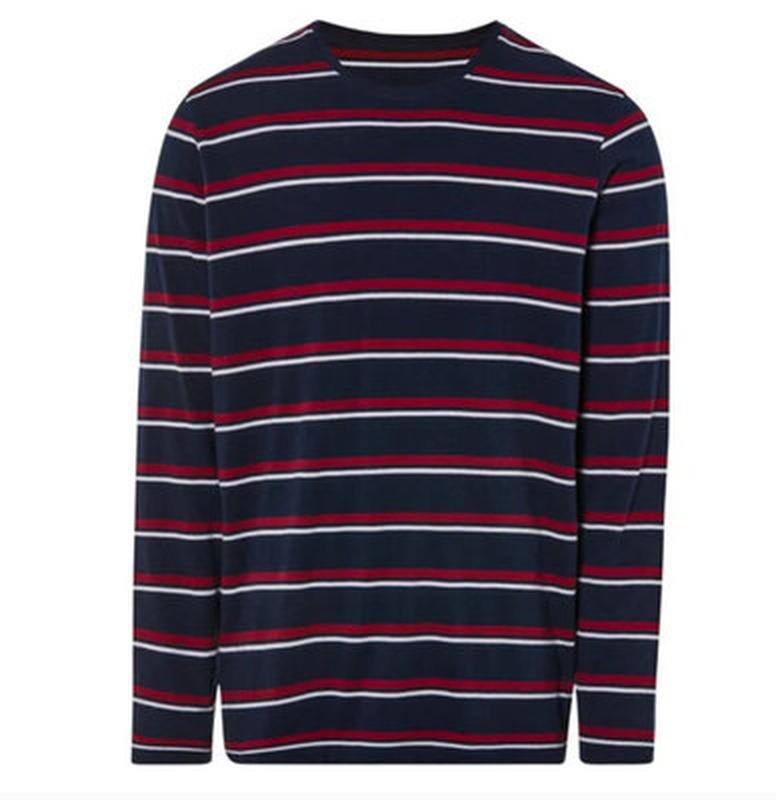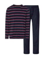 با این ست راحتی مردانه، تجربهای بینظیر از آسایش و شیکپوشی را در خانه تجربه کنید. بلوز آستینبلند با طرح راهراه افقی در رنگهای قرمز، سفید و آبی روشن روی زمینهی سرمهای، جلوهای کلاسیک و چشمنواز دارد. شلوار ساده و یکدست سرمهای با کمر کشی و بند تنظیم، راحتی کامل را برای استراحت یا خواب فراهم میکند.