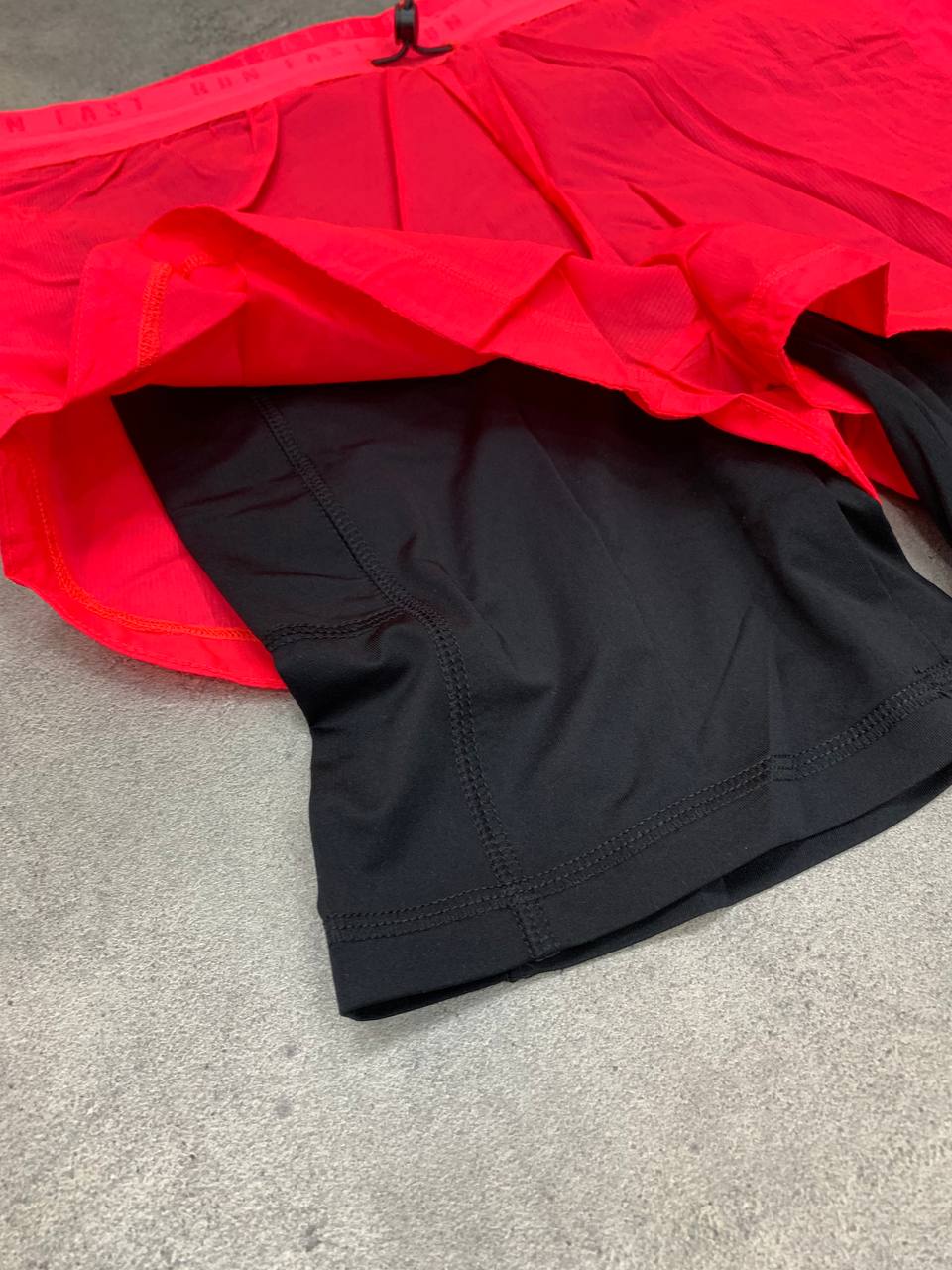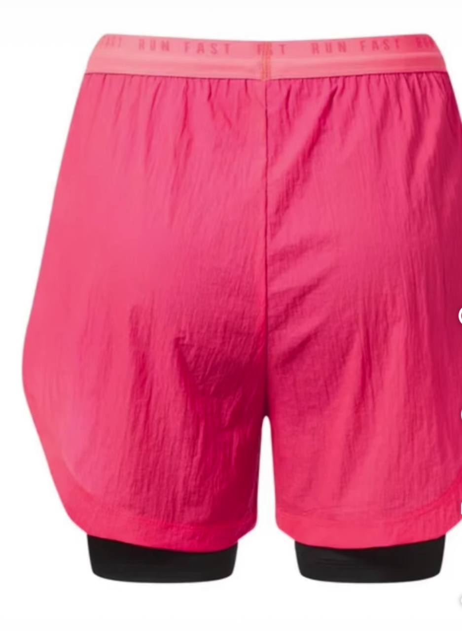 ترکیبی از راحتی، استایل و عملکرد حرفهای است. لایهی بیرونی با رنگ صورتی پرانرژی و بافت خاص، جلوهای چشمنواز دارد؛ در حالی که لایهی داخلی مشکی، از جنس شلوارکهای فشرده، پشتیبانی و آزادی حرکت را تضمین میکند. کمر کشی با چاپ مکرر عبارت “RUN FAST” و بند تنظیمکننده، هم زیبایی دارد و هم کاربردی است. مناسب برای دویدن، تمرینات هوازی و استایل اسپرت روزمره.