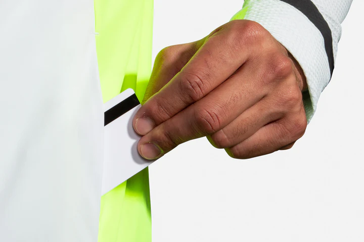 این ژیله با زیپ سراسری و جیبهای کناری طراحی شده و خطوط بازتابنده (رفلکتیو)