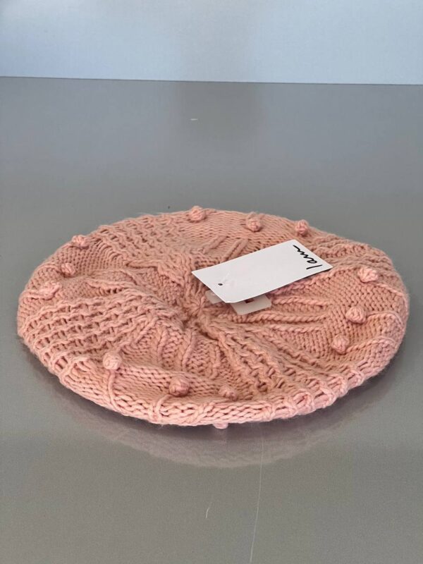 این کلاه بِرِه بافتنی، با رنگ صورتی ملایم و بافت برجسته‌ی دانه‌دار، تلفیقی از ظرافت زنانه و هنر دست‌باف است. طراحی خاص آن با جزئیات برجسته، حال‌وهوای پاریسی را به استایل شما می‌آورد؛ همان‌قدر شیک، همان‌قدر گرم.
